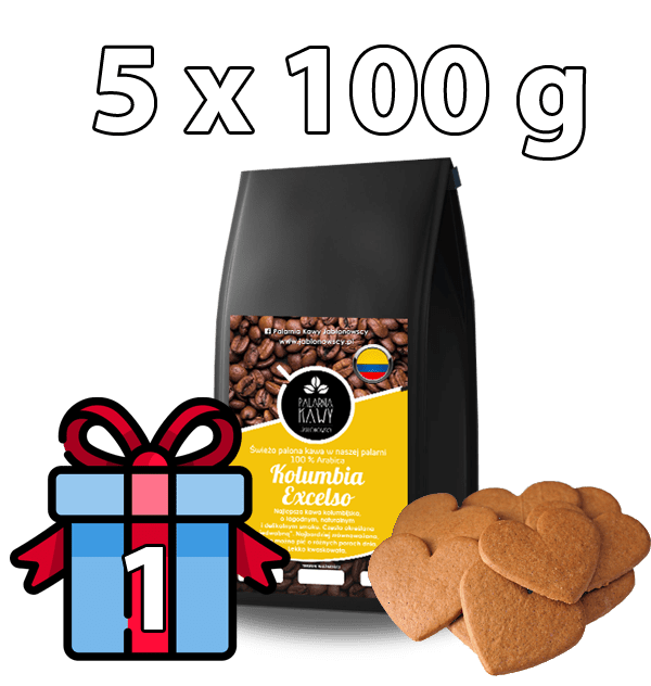 / Zestaw prezentowy nr 1 (5×100 g kawy + ciastka)